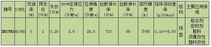 在瀝青中加入3%—15%的SBS792可改善瀝青的低溫屈撓性和高溫抗流動性能。改善瀝青的低溫屈撓性可減輕瀝青低溫下的發(fā)硬、發(fā)脆、龜裂,提高公路、卷材的使用壽命。改善瀝青的高溫抗流動性能可減輕瀝青在高溫下的軟化流淌。
